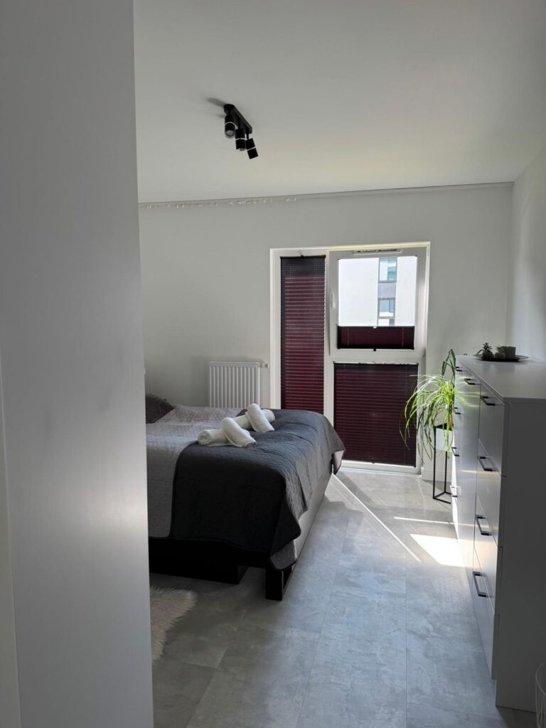 Przestronny apartament dla trzech osób to idealne miejsce na pobyt w Gorzowie Wielkopolskim. Składa się z dwóch pokoi – w jednym znajduje się wygodne łóżko małżeńskie, a w drugim dodatkowe miejsce do spania, co sprawia, że świetnie sprawdzi się zarówno dla pary, rodziny, jak i małej grupy znajomych.